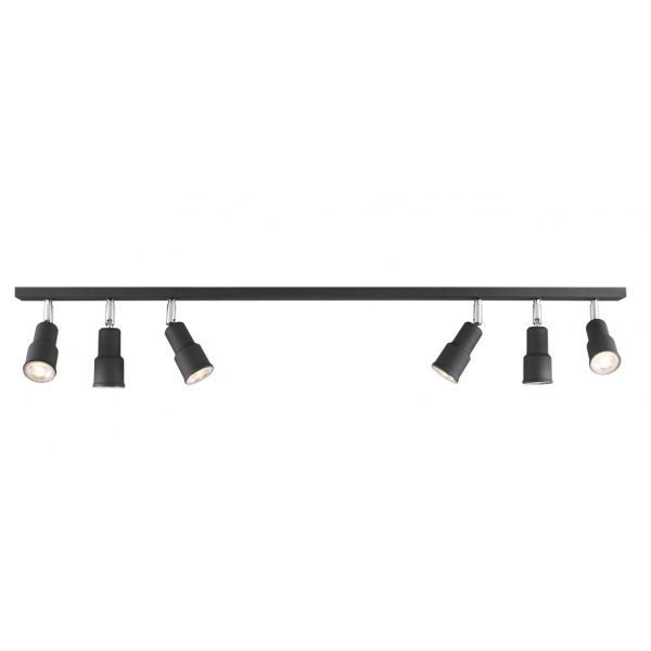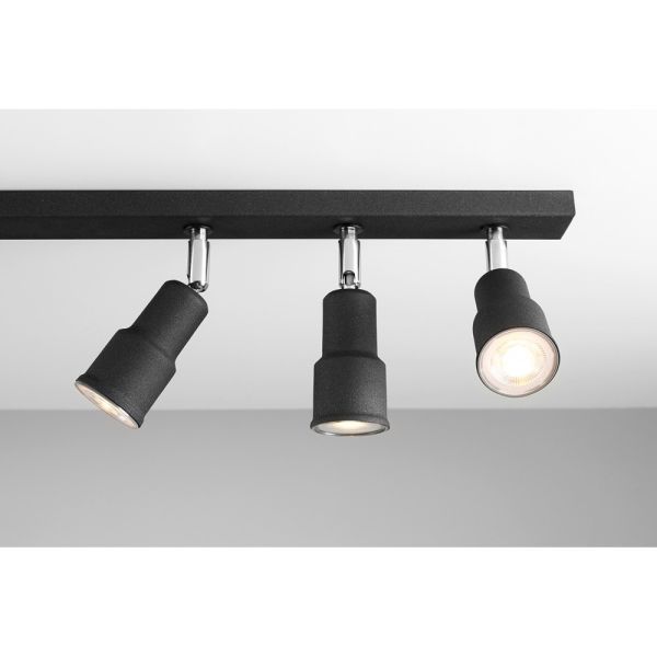 Praktyczny i elegancki model lampy sufitowej, który doskonale sprawdza się jako oświetlenie kuchni lub gabinetu. Reflektory można regulować. Charakterystyka lampy: numer katalogowy 986PL/K1, wykonanie - czarny metal, dodatkowe informacje - reflektory, styl nowoczesny, typ trzonka żarówki GU10.