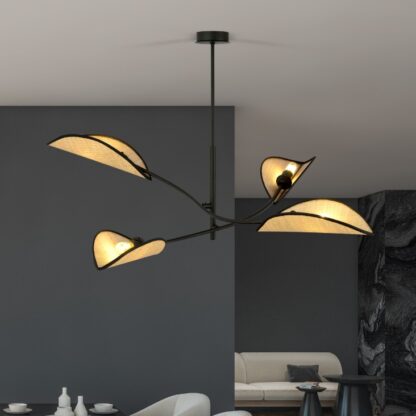 Rattanowy żyrandol Lotus 4 to prawdziwy majstersztyk w świecie oświetlenia boho. Czarne, matowe ramiona kontrastują z ciepłymi, plecionymi kloszami, tworząc harmonijną kompozycję, która przyciąga wzrok. Dotykając gładkiej powierzchni metalu i naturalnej faktury rattanu, czujesz jakość wykonania - to lampa, która posłuży latami.