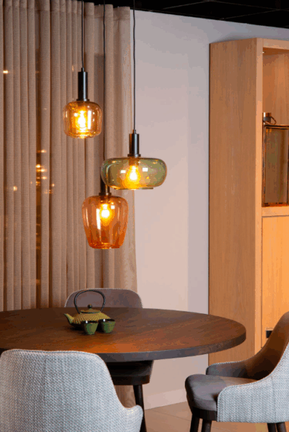 Przejdź do sklepuLampa sufitowa Ilona z trzema kolorowymi szklanymi kloszami wiszącymi