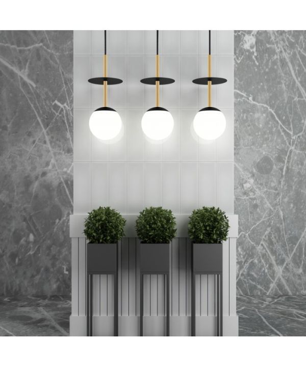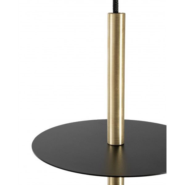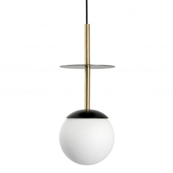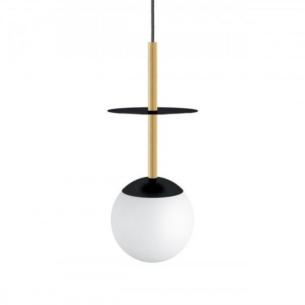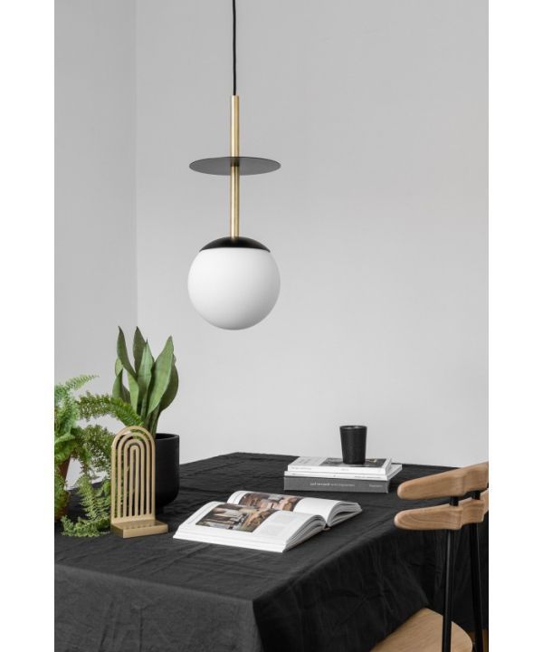 Lampa sufitowa Plaat Brass w nowoczesnym stylu wpasuje się w jasne wnętrza. Piękny, mleczny klosz a nad nim czarny dysk ukazują piękno z pozoru prostej lampy. Złote mocowanie również dodaje lampie elegancji.