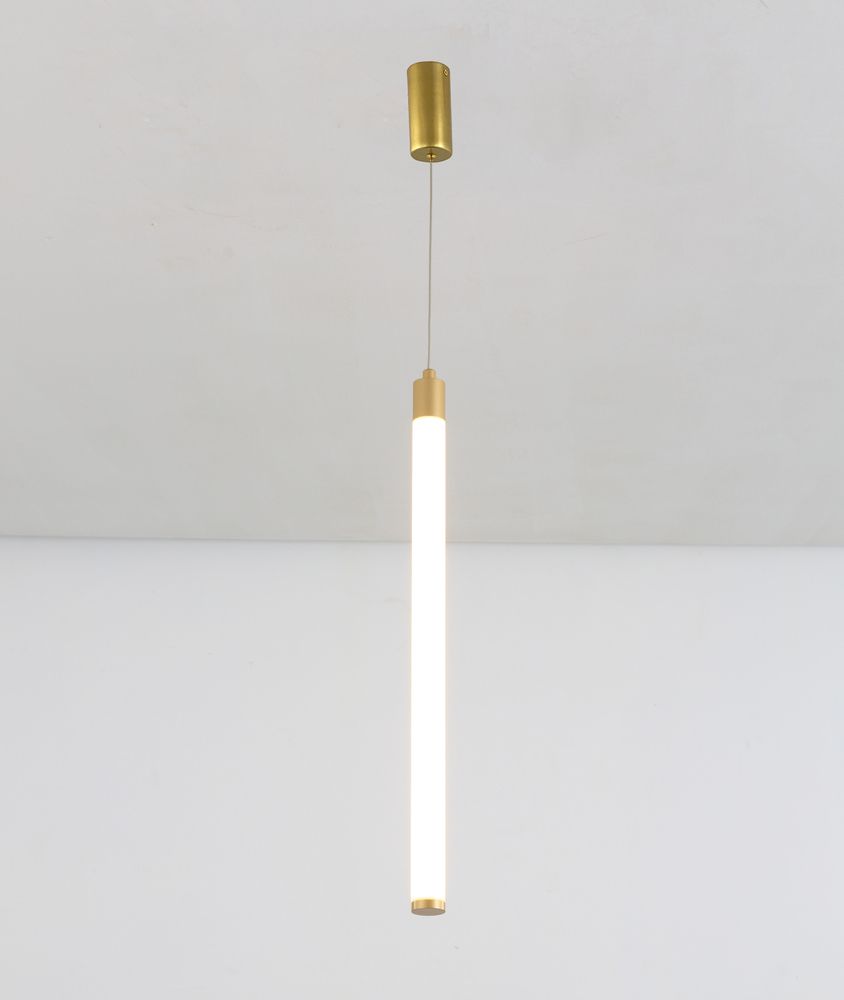 Lampa sufitowa Ray w złotym kolorze, w formie tuby z oświetleniem LED