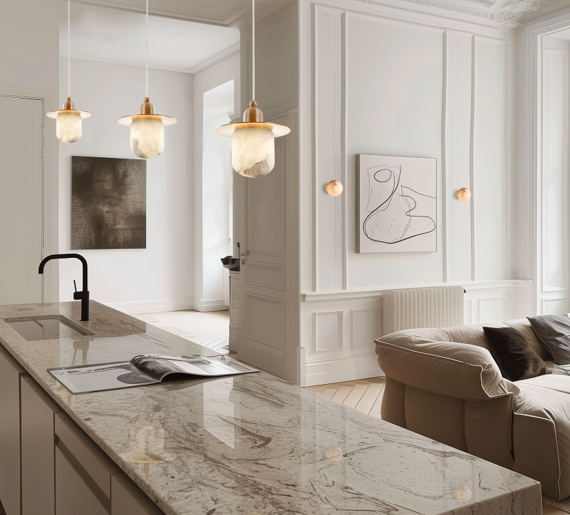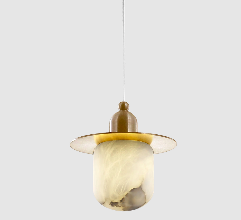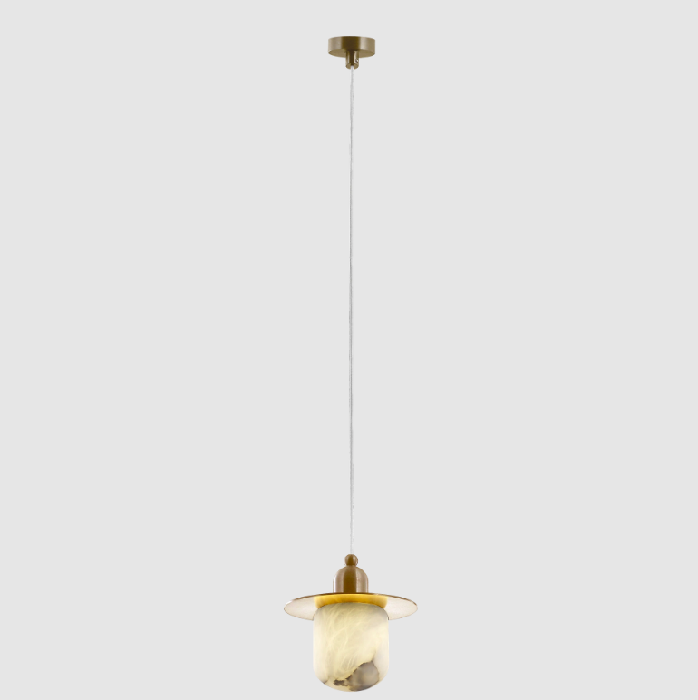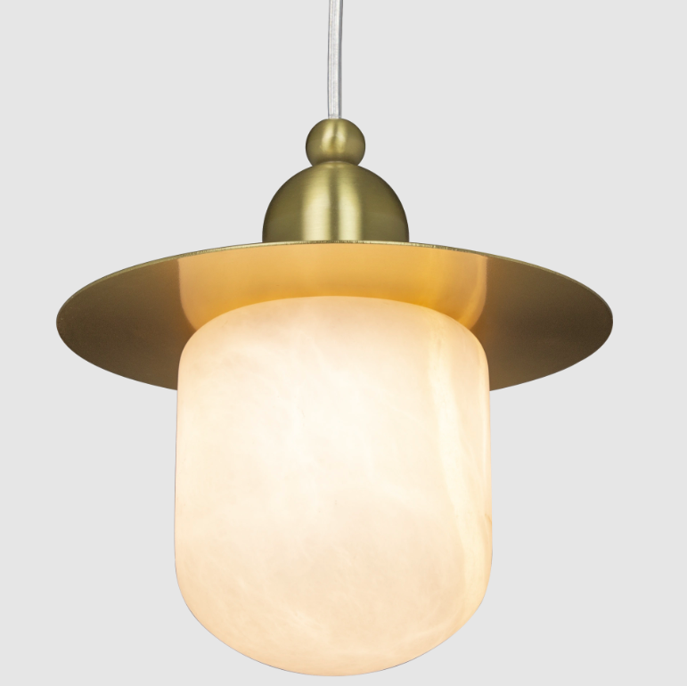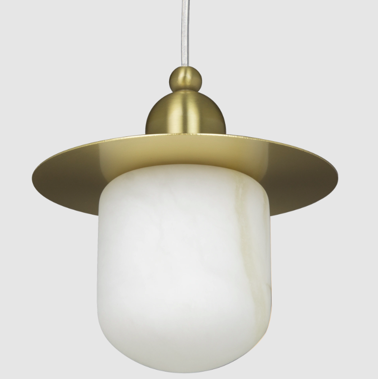 Lampa sufitowa Volterra 15 z alabastrowym kloszem i złotą mosiężną kopułą