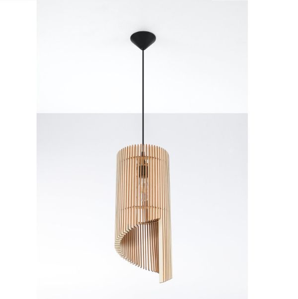 Efektowna, naturalna lampa wisząca odpowiednia do wnętrz boho i rustykalnych. Ażurowy klosz przepuszcza przyjemne, dekoracyjne światło.- Wysokość klosza: 51cm