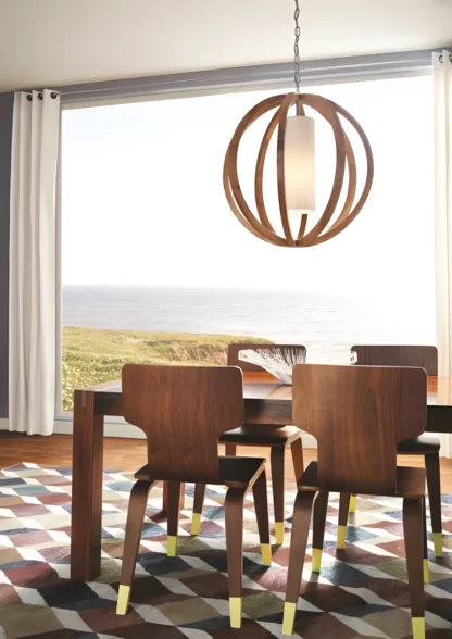 Ciekawy przykład lampy wiszącej do takich pomieszczeń jak kuchnia, salon - od słynnego producenta Ardant Decor. Charakterystyka lampy: numer katalogowy FE/ALLIER/P/L LW, wykonanie - szkło, drewno dębowe, dodatkowe informacje - styl nowoczesny, szklane, typ trzonka żarówki E27, moc 75 W.