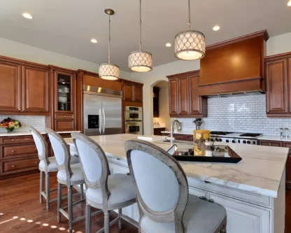 Ślicznej lampie wiszącej Bella jeszcze większego uroku dodają kryształku osadzone na abażurze. Gdy lampa świeci mienią się pięknie nadając wnętrzu magicznego klimatu. Lampa doskonale sprawdzi się zarówno we wnętrzach glamour jak i klasycznych. Pięknie wygląda nad stołem w jadalni, ale również w kuchni czy na korytarzu.