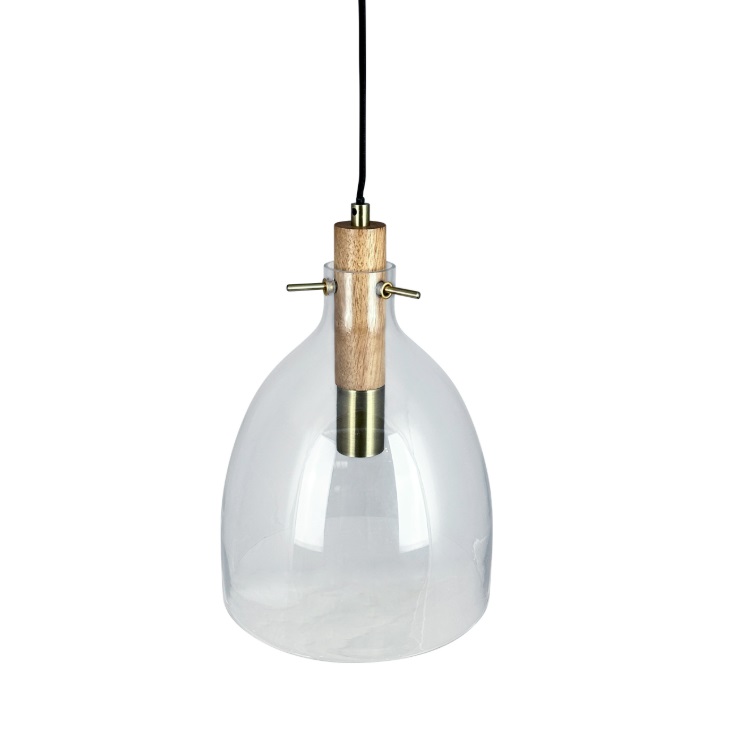 Lampa wisząca Bistro 25 z drewnianym detalem i szklanym kloszem E27