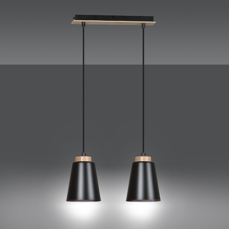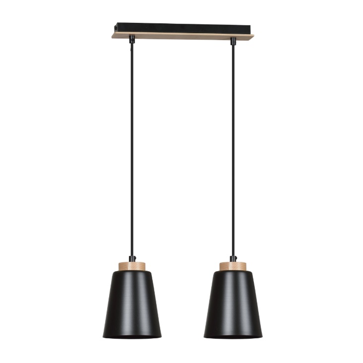 Lampa wisząca Bolero 2 z czarnymi kloszami i drewnianymi akcentami