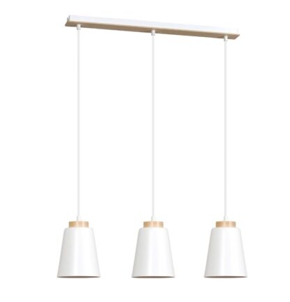 Lampa wisząca Bolero 3 z drewnianą listwą i trzema kloszami E27