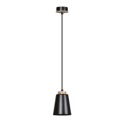 Lampa Bolero to prawdziwy majstersztyk prostoty, który zachwyca precyzyjnym wykonaniem. Matowa czerń metalowego klosza o kształcie ściętego stożka kontrastuje z ciepłym, jasnym drewnem przy górnej krawędzi, tworząc harmonijne połączenie surowości z naturalnością. Ta subtelna gra materiałów sprawia, że lampa staje się nie tylko źródłem światła, ale prawdziwą ozdobą wnętrza.