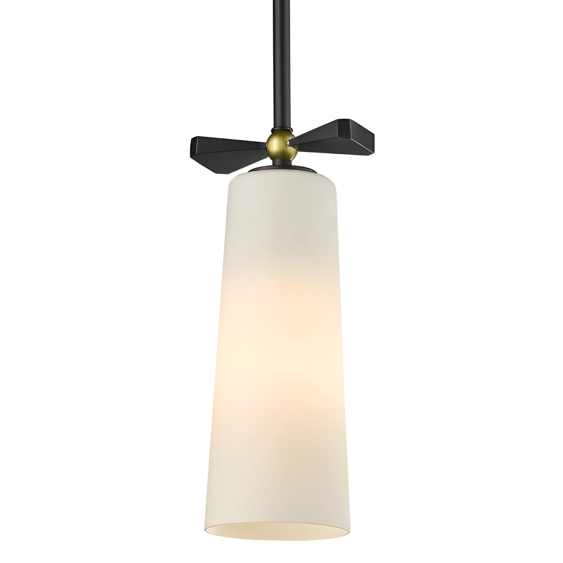 Elegancka lampa wisząca ze szklanym kloszem, umieszczona na czarnym zawieszeniu z ozdobnym detalem w kształcie kokardki. Idealnie sprawdzi się we wnętrzu w stylu glamour - zarówno w sypialni, salonie, jak i w łazience.