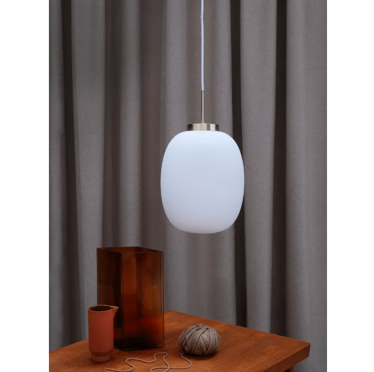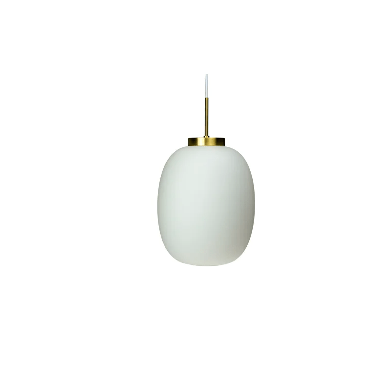 Lampa wisząca Café DL39 z białym szklanym kloszem i złotym akcentem