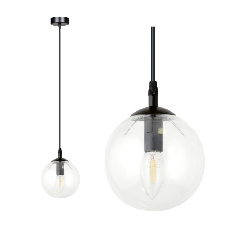 Napisz pierwszą opinię o „Lampa wisząca Cosmo z przezroczystym szklanym kloszem E14”
