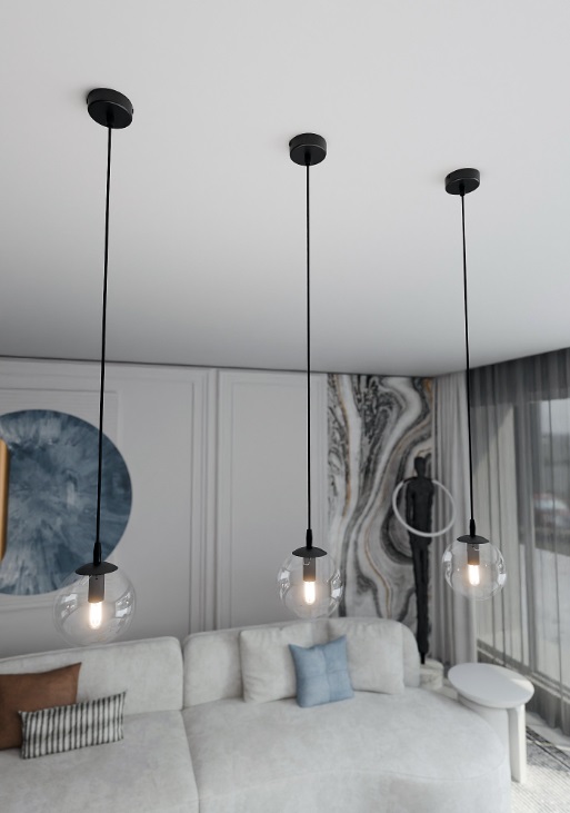 • Przezroczysty klosz ze szkła - tworzy spektakularny efekt rozproszenia światła w całym pomieszczeniu