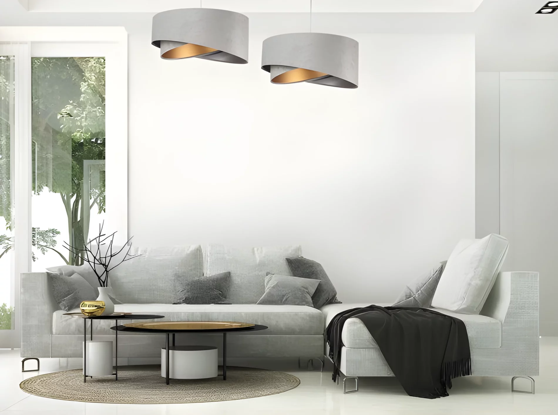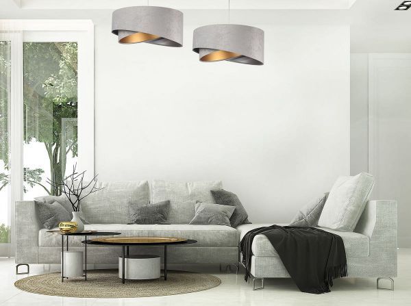 Szara welurowa lampa wisząca Galaxy z srebrnym wnętrzem