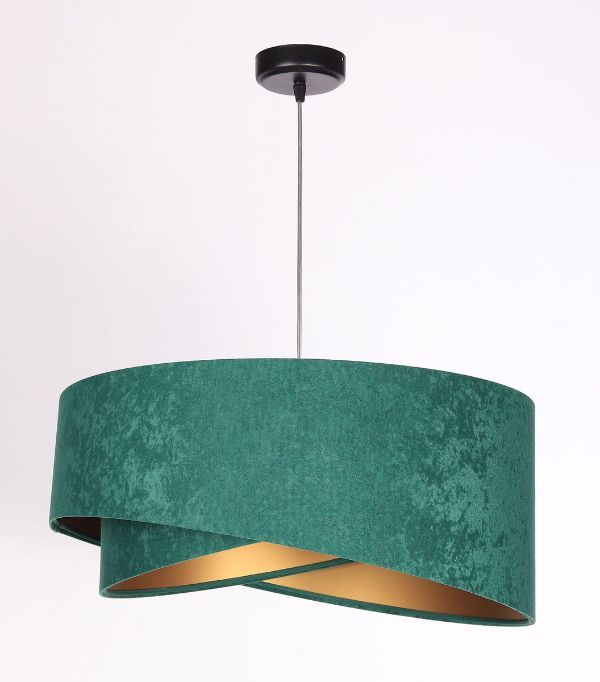 Lampa wisząca Galaxy to nowoczesny design, który cudownie zaprezentuje się w każdym salonie lub sypialni. Połączenie zieleni oraz złota dało niesamowity efekt i prezentuje się niezwykle elegancko. Lampa odporna na promienie UV, dzięki czemu tkanina nie blaknie.