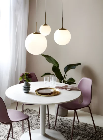 Lampa wisząca Grant 15 wykonana jest z szkła i metalu w wykończeniu mosiądz, białe szkło opalowe, biały przewód. Szklany, opalowy klosz miękko rozprasza światło i ogranicza olśnienie nad blatem czy w strefie wypoczynkowej. Kluczowe wymiary (Ø 15 cm × wys. 30 cm) ułatwiają zaplanowanie miejsca montażu nad stołem lub stolikiem kawowym. E14 (maks. 10 W) oraz IP20 — do wnętrz suchych. Pasuje do stylów: nowoczesny, glamour. Montaż: na suficie, jako lampa wisząca. Nie, żarówka nie jest dołączona do lampy wiszącej Grant 15. Oprawa ma trzonek E14, więc możesz dobrać osobno żarówkę LED o preferowanej barwie i jasności, pamiętając o maksymalnej mocy 10 W. Dzięki temu łatwo dopasujesz światło do charakteru wnętrza. Tak, lampę Grant 15 można ściemniać. Wystarczy zastosować ściemnialną żarówkę E14 oraz odpowiedni ściemniacz w instalacji. Pozwoli to ustawić mocniejsze światło do codziennych czynności lub delikatny, nastrojowy półmrok wieczorem. Lampa Grant 15 ma klosz o średnicy 15 cm i wysokości 15 cm, a całkowita wysokość oprawy wynosi 30 cm. Przewód ma długość 200 cm, co daje dużą swobodę przy ustawieniu wysokości zawieszenia nad stołem, wyspą kuchenną lub stolikiem kawowym. Nie, Grant 15 nie nadaje się do montażu w łazience w strefach narażonych na wilgoć. Stopień szczelności IP20 oznacza, że lampa przeznaczona jest do suchych pomieszczeń, takich jak salon, jadalnia, sypialnia czy korytarz z dala od bezpośrednich zachlapań.Dlaczego warto wybrać lampę wiszącą Grant 15?