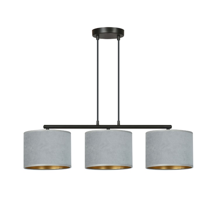 Szary welurowy żyrandol Hilde 3 z trzema abażurami E27