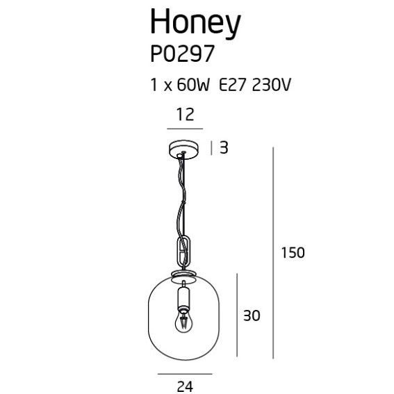 Lampa wisząca Honey to industrialny styl, który oświetli każda kuchenną wyspę lub blat. Klosz wspaniale oświetli wnętrze, doda elegancji oraz subtelności. Zachwyca swoim niepowtarzalnym wyglądem oraz formą.