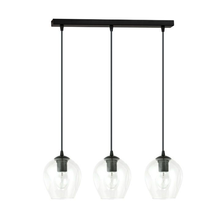 Lampa wisząca Istar 3 Premium — potrójne oświetlenie nad stół z przezroczystymi szklanymi kloszami