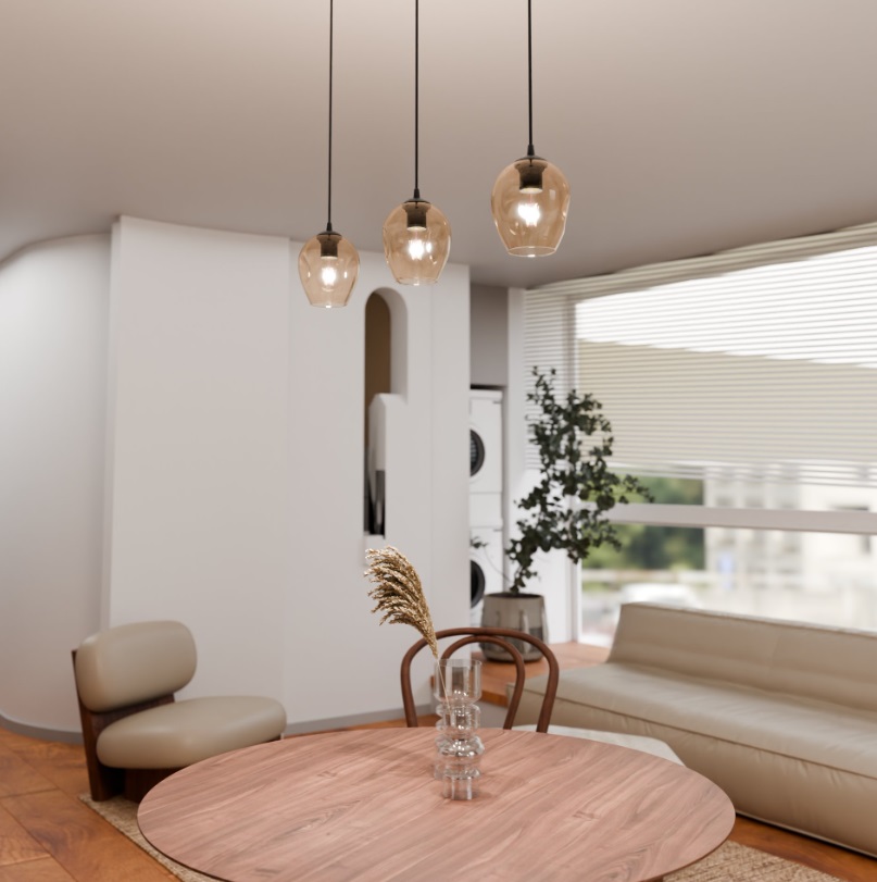 Ta wisząca oprawa świetnie komponuje się z wnętrzami w stylu mid-century modern, gdzie miodowe akcenty są pożądane, ale równie dobrze sprawdzi się w nowoczesnych aranżacjach typu soft loft czy minimalistycznych przestrzeniach potrzebujących ciepłego akcentu. Jeśli szukasz lampy, która rozwiąże problem zimnego, nieprzyjemnego oświetlenia nad stołem czy blatem - Istar spełni Twoje oczekiwania, łącząc funkcjonalność z wyrafinowaną estetyką.