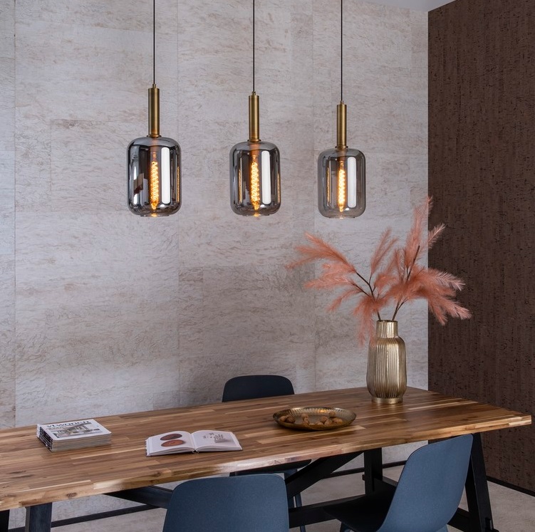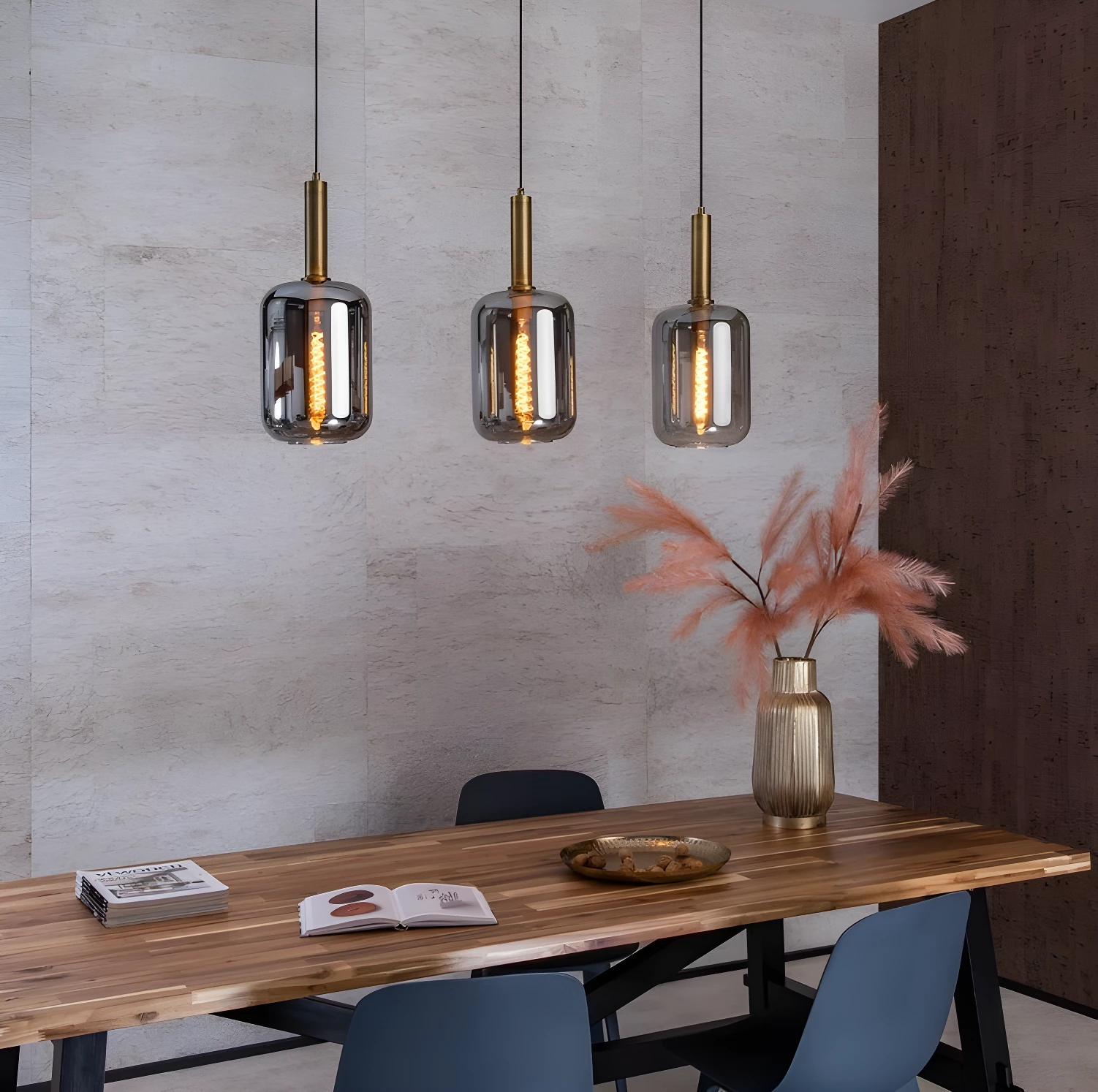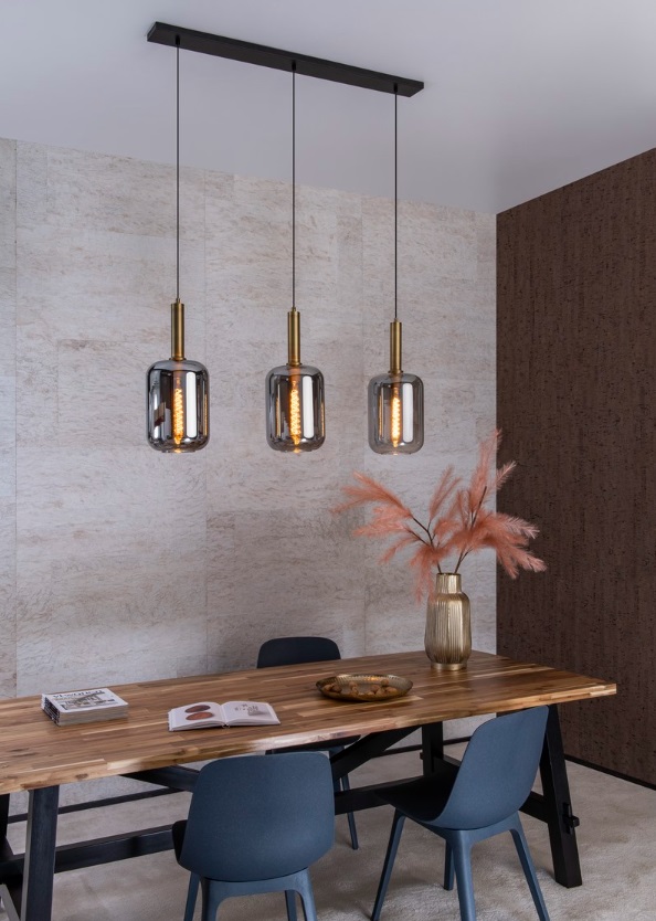 Lampa wisząca Joanet z trzema szklanymi kloszami do oświetlenia stołu