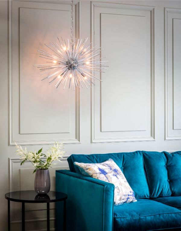Innowacyjny przykład lampy wiszącej do takich pomieszczeń jak salon - od znanego producenta Endon. Charakterystyka lampy: numer katalogowy 76350, wykonanie - polerowany chrom, dodatkowe informacje - styl nowoczesny, typ trzonka żarówki G9, moc 28 W.