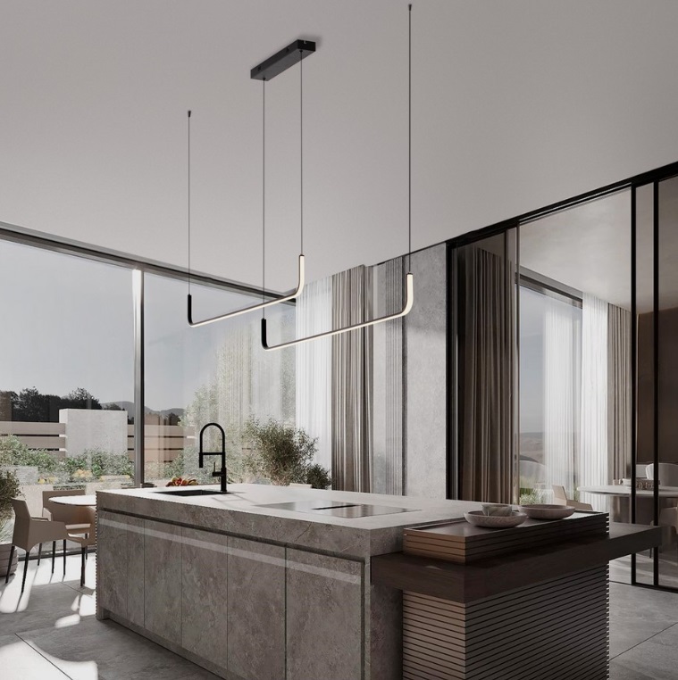 Lampa wisząca Lineform 2 LED 42W w kolorze czarnym – podłużna oprawa nad stół i wyspę kuchenną