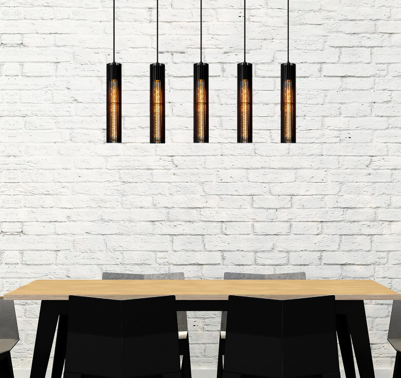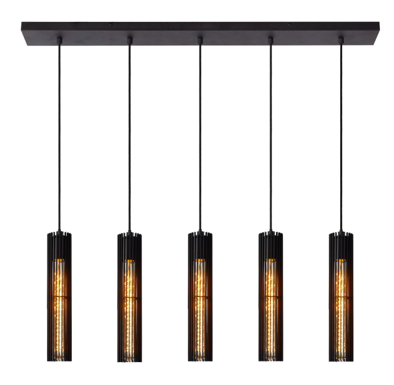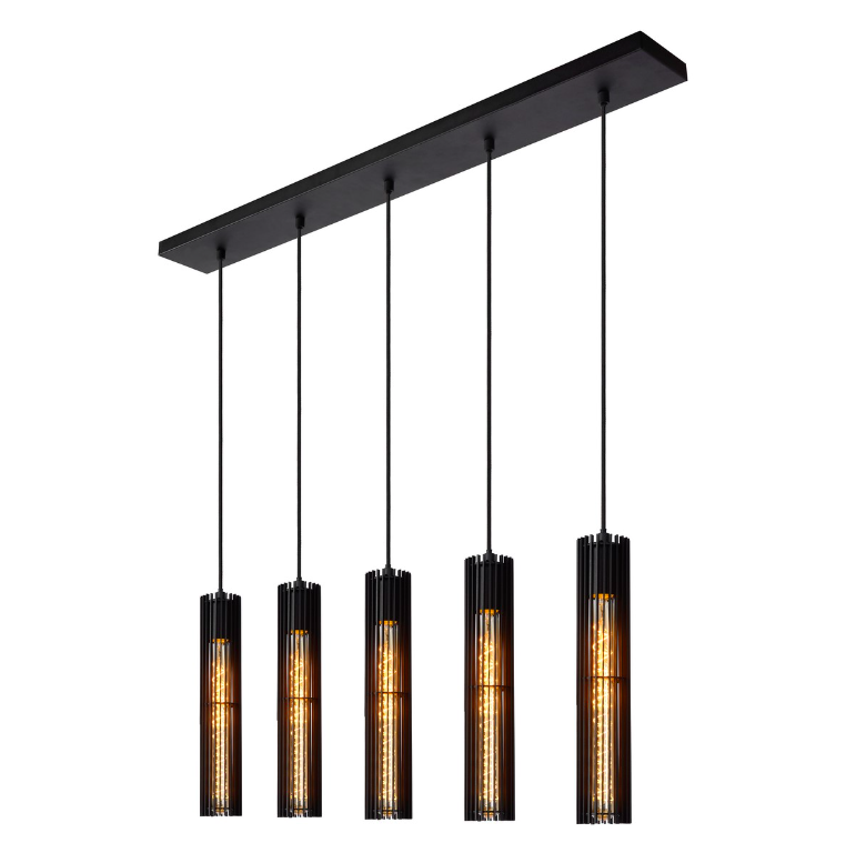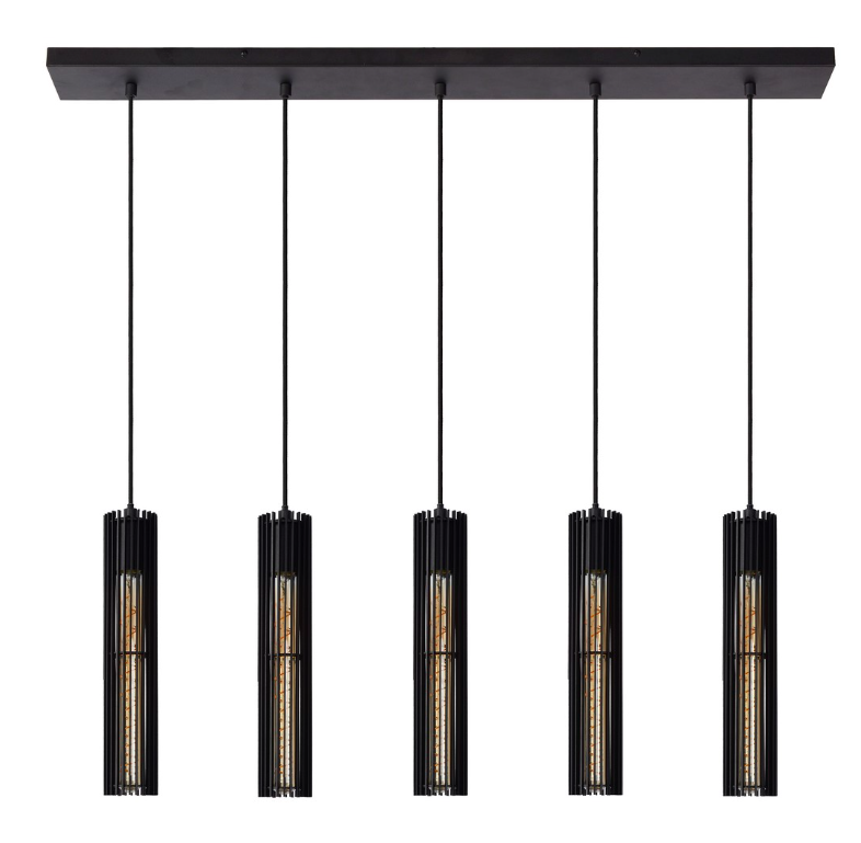 Lampa wisząca Lionel 5 w czarnym kolorze – eleganckie tuby nad stół lub wyspę kuchenną