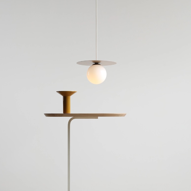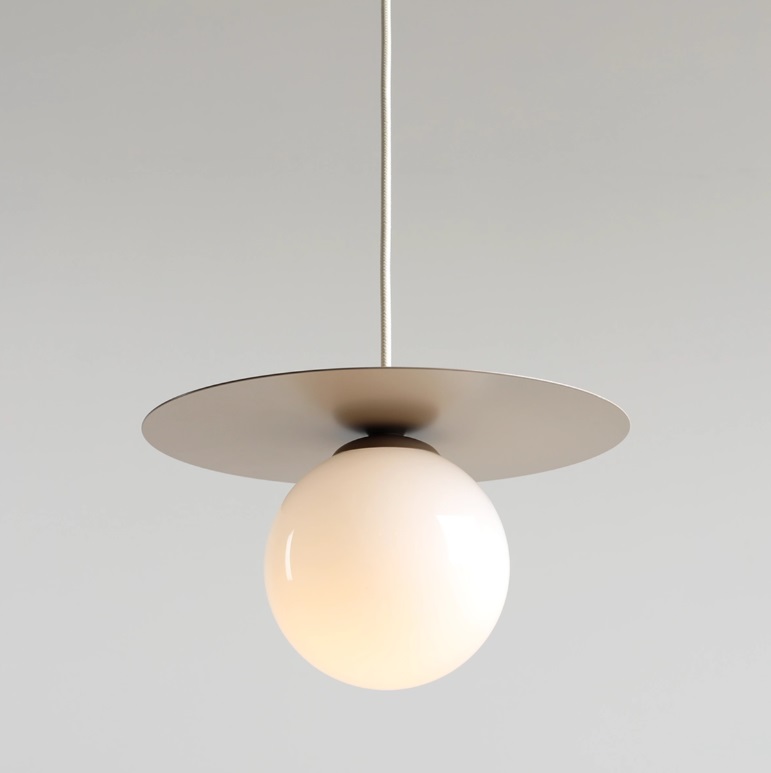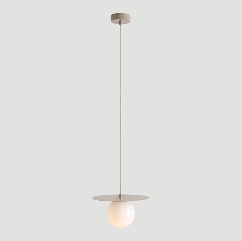 Lampa wisząca Loop S w kolorze beżowym z ozdobnym dyskiem – idealna nad stół