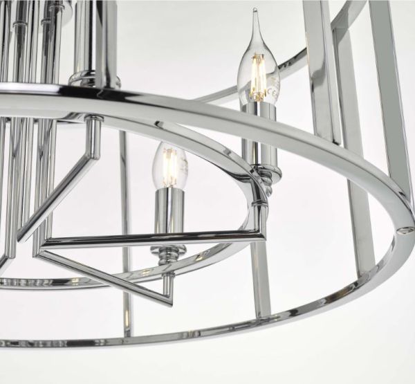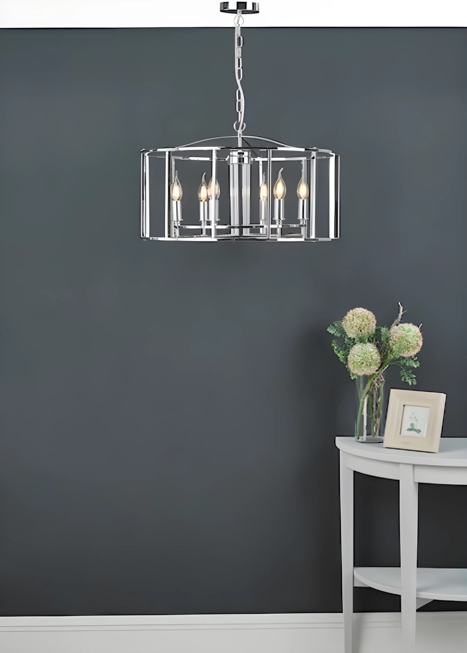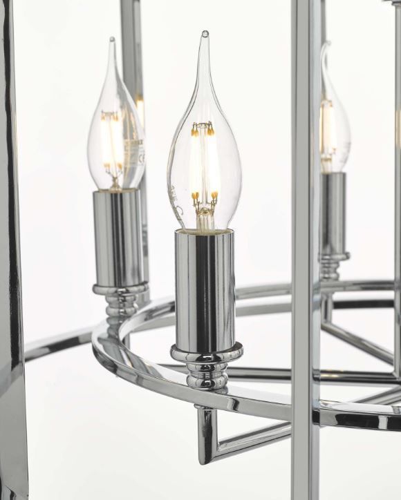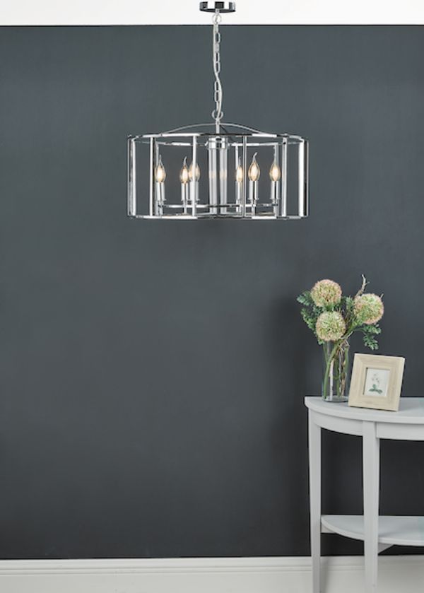 Lampa Myka to piękna duża lampa, która sprawdzi się nie tylko w salonie, ale również kuchni. Posiada w sobie świecznikowe oprawki na żarówki, które ukazują jej delikatnie klasyczny charakter. Kolor polerowanego niklu wpasuje się w każdą aranżacje.