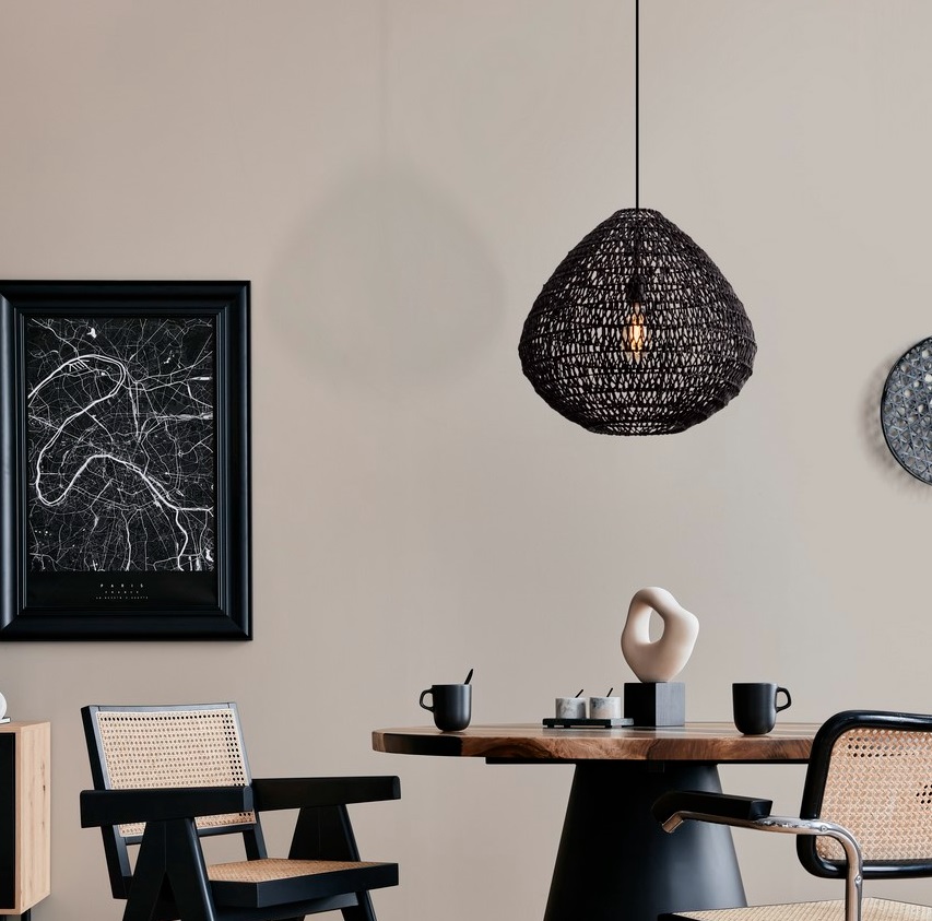 Lampa wisząca Nayora 50 w kolorze czarnym, wykonana z plecionki