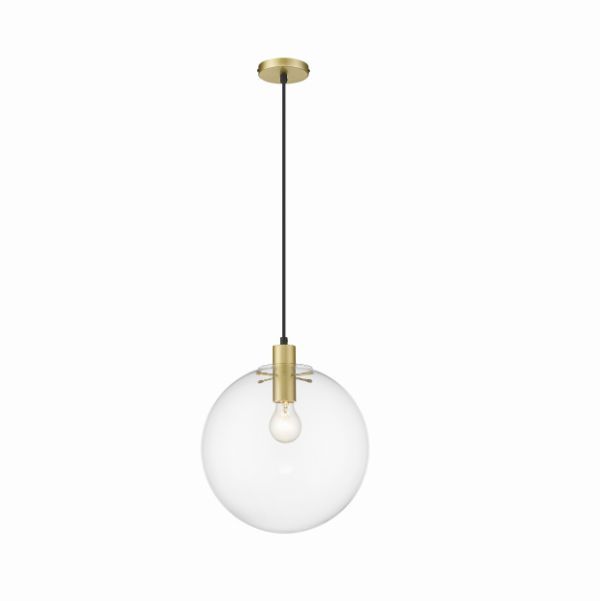 Lampa wisząca Puerto L z przezroczystym szklanym kloszem i eleganckimi złotymi akcentami