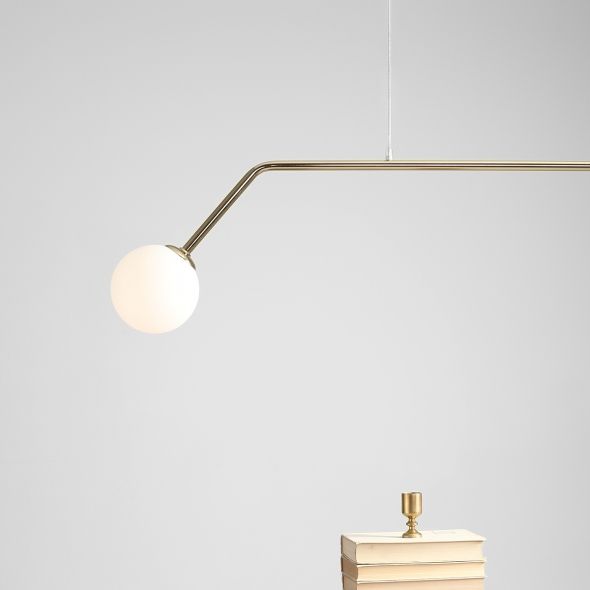 Lampa wisząca Pure to nowoczesne wykonanie, które doskonale sprawdzi się nad sofą w kuchni. Mleczne klosze fantastycznie komponują się ze złotym stelażem, razem prezentują się cudownie. Lampa posiada możliwość regulacji zawieszenia.
