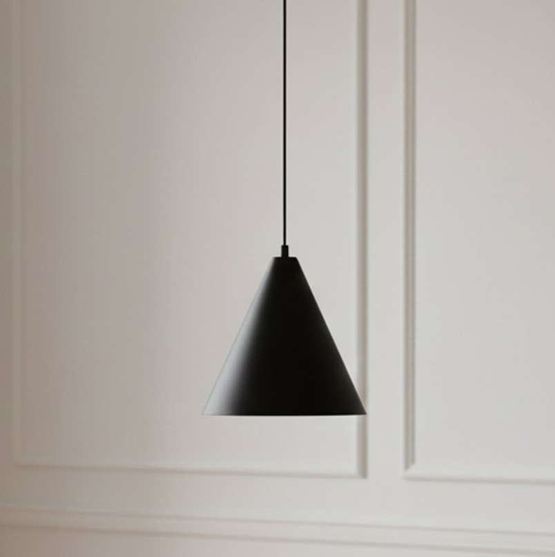 Stożkowy klosz z metalu o głębokiej matowej czerni na zewnątrz i gładkim, białym wnętrzu. Lampa nie oślepia, a snop kierowany na blat jest równomierny i wyraźnie ograniczony do strefy pod kloszem. Sprawdzi się pojedynczo nad stolikiem kawowym lub w rzędzie dwóch, trzech sztuk nad blatem kuchennym czy wyspą kuchenną.Zapytaj o ten produkt