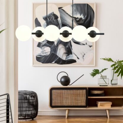 • 6 opalowych kul o średnicy 15 cm tworzących spójną kompozycję świetlną nad stołem
