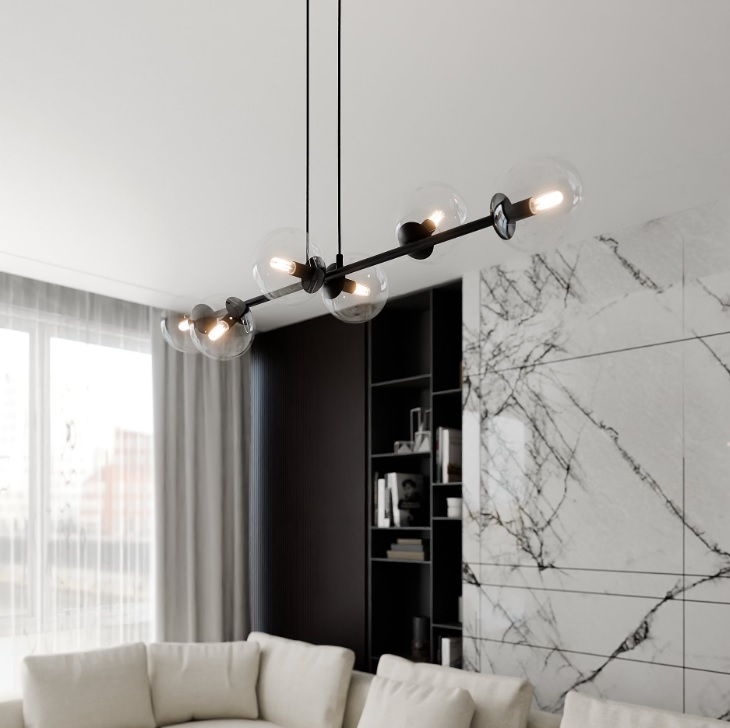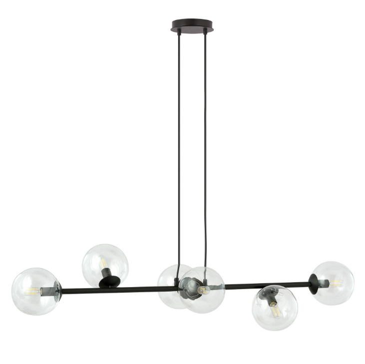 Lampa wisząca Rossi 6 nad stół – czarna z przezroczystymi kloszami E14