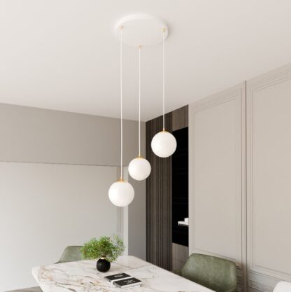 Royal 3 to lampa, która zachwyca harmonijną kompozycją trzech idealnie gładkich, opalowych kul. Dotykając ich powierzchni podczas montażu, poczułem przyjemną w dotyku, satynową fakturę szkła, która w połączeniu ze złotymi detalami tworzy wrażenie dyskretnej elegancji. Białe przewody tekstylne nadają całości lekkości - lampa zdaje się unosić w przestrzeni, nie przytłaczając nawet niewielkich wnętrz.