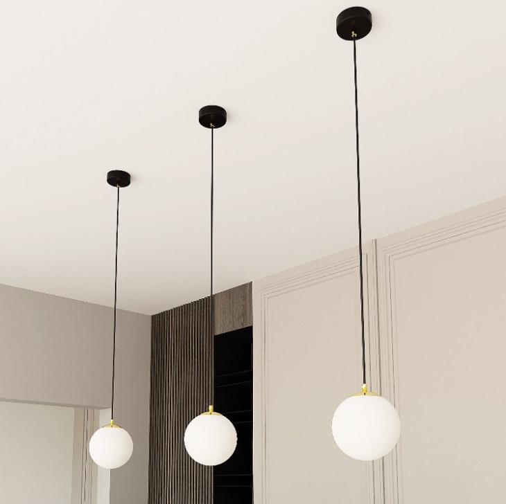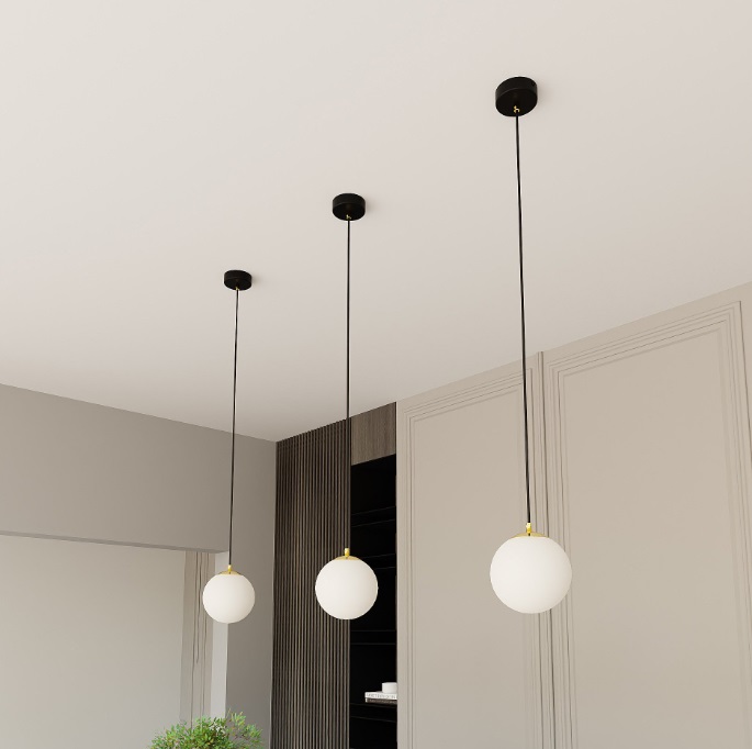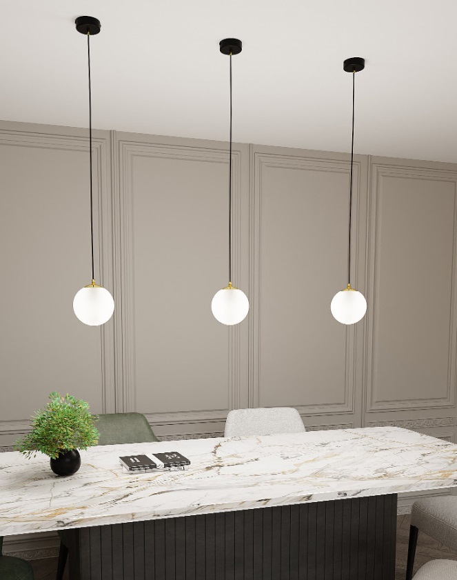 Royal to lampa, która zachwyca harmonijnym połączeniem kontrastów. Dotykając gładkiej powierzchni czarnego przewodu i delikatnie matowego klosza, od razu wyczuwasz solidność wykonania. Złote detale przy oprawie nie są krzykliwe - to subtelny akcent, który dodaje całości wyrafinowanego charakteru. Mlecznobiały klosz rozprasza światło równomiernie, tworząc przyjemną aurę bez ostrych cieni.