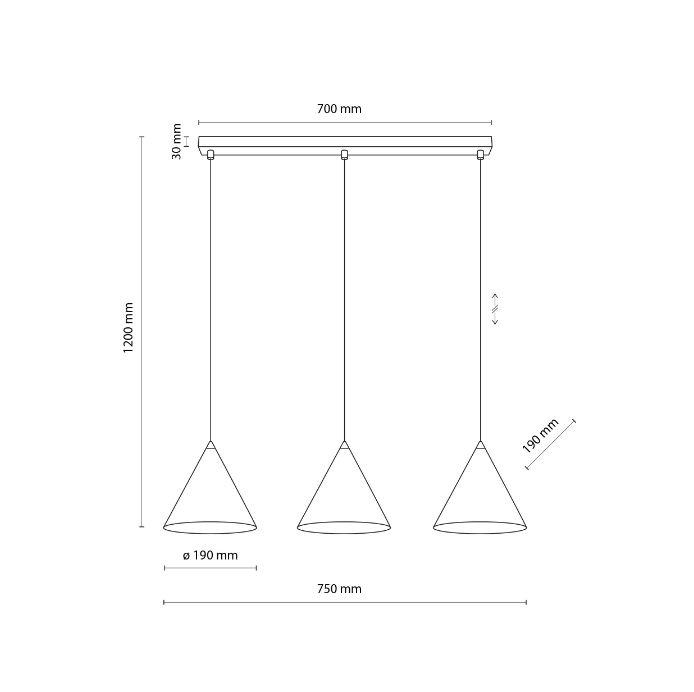 Napisz pierwszą opinię o „Lampa wisząca sufitowa Cono TK z trzema punktami świetlnymi, długość 75 cm, idealna nad stół”