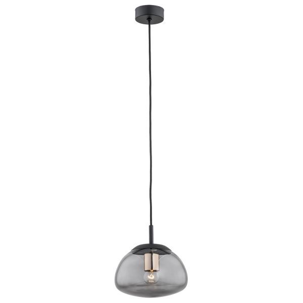 Lampa Trini S to propozycja fantastyczna do nowoczesnych wnętrz. Sprawdzi się nad kuchennym blatem lub prostokątnym stołem. Cudowny szklany klosz ze złotymi i czarnymi dodatkami wygląda niezwykle elegancko.