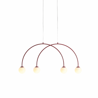 Koralowa wisząca lampa Una 4 S z dwoma łukami i czterema kloszami