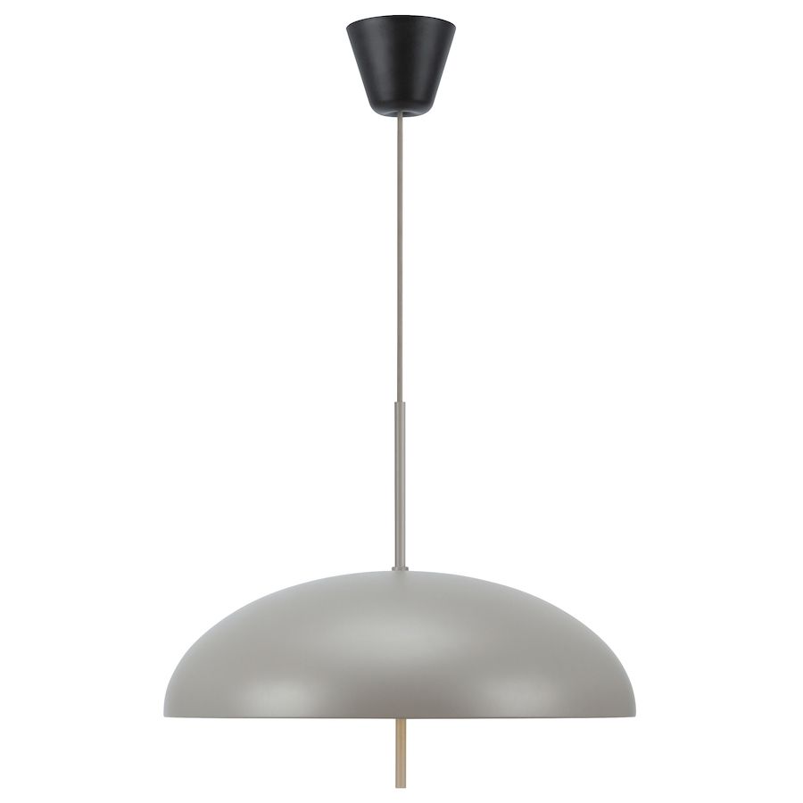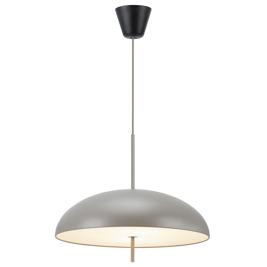Owalna lampa wisząca Versale w odcieniu brązu / taupe. Mleczny dyfuzor pięknie rozprowadza światło, tworząc przyjemną atmosferę.
