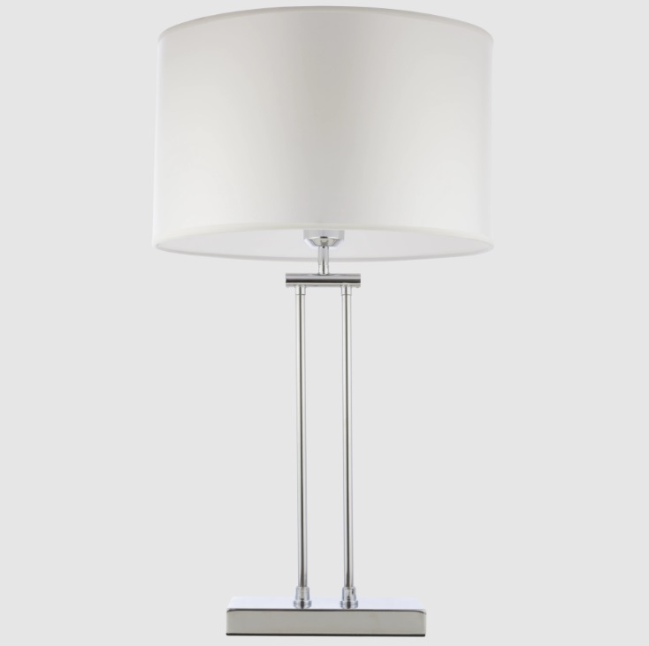 Lampka stołowa Athens chrom z białym abażurem w stylu Hampton