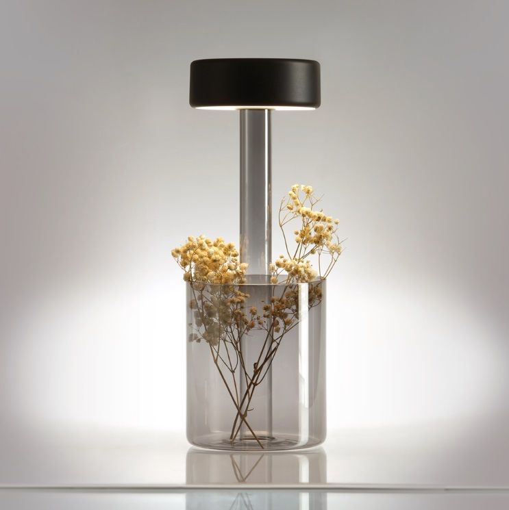 Lampka stołowa LED zasilana bateriami z wbudowanym kwietnikiem AI Collaboration w dymionym szkle