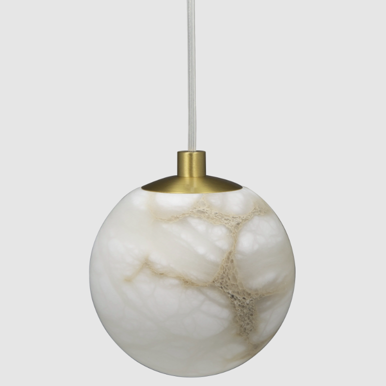 Mała wisząca lampa Volterra z alabastrową kulą i złotymi zdobieniami