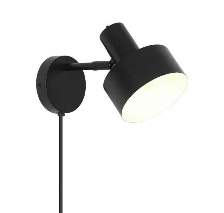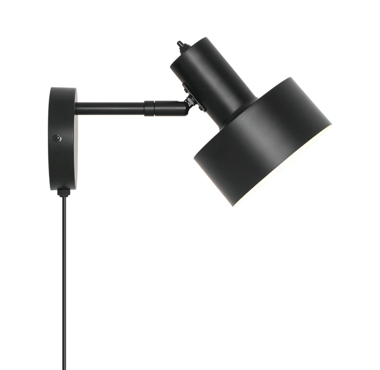 Mały, czarny kinkiet Matis do sypialni z regulowanym kloszem