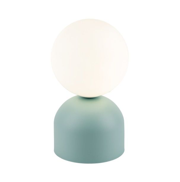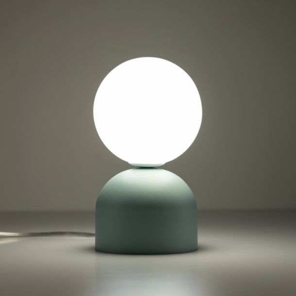 Miętowa nocna lampka Miki z białą kulką do sypialni