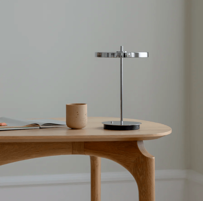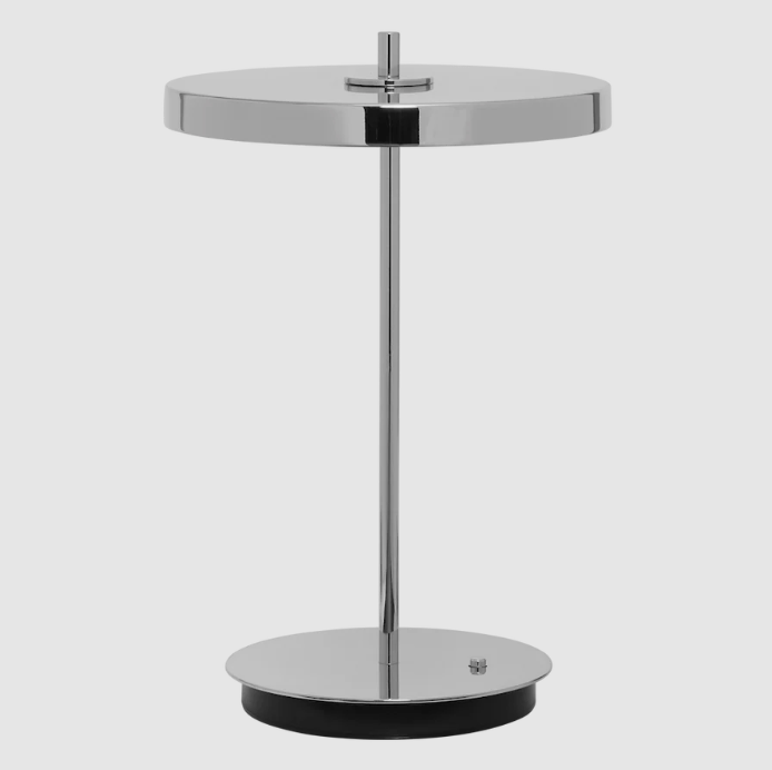 Mobilna srebrna lampka stołowa LED Asteria Move V2, ładowana przez USB