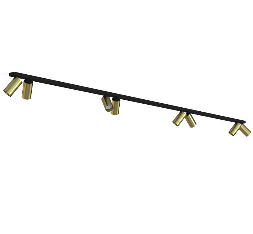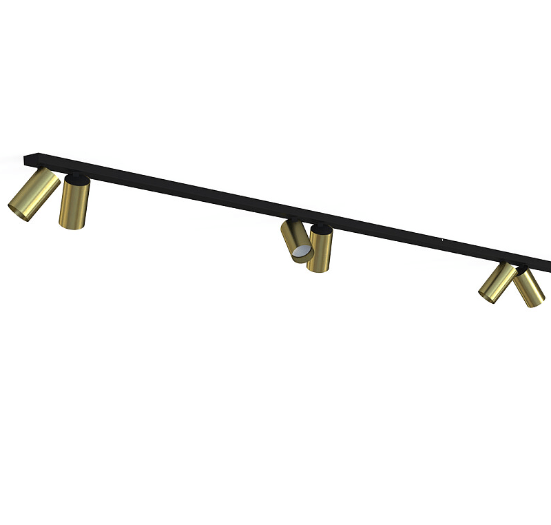 Mosiężne reflektory zamontowane na czarnej szynie Mono VIII o długości 3 m (2x150 cm)