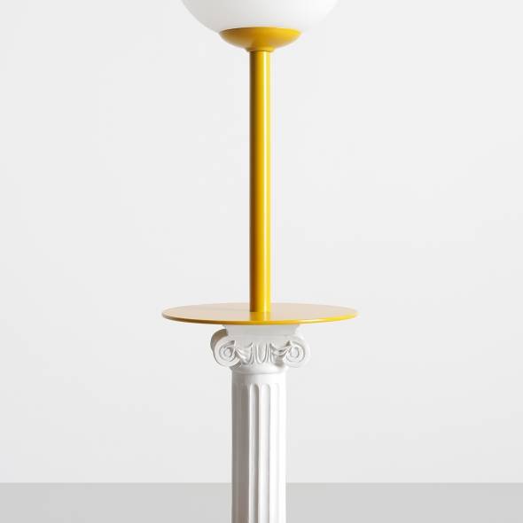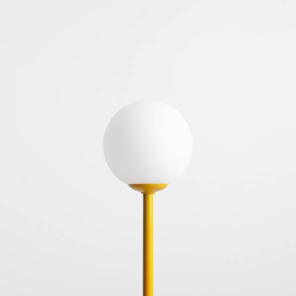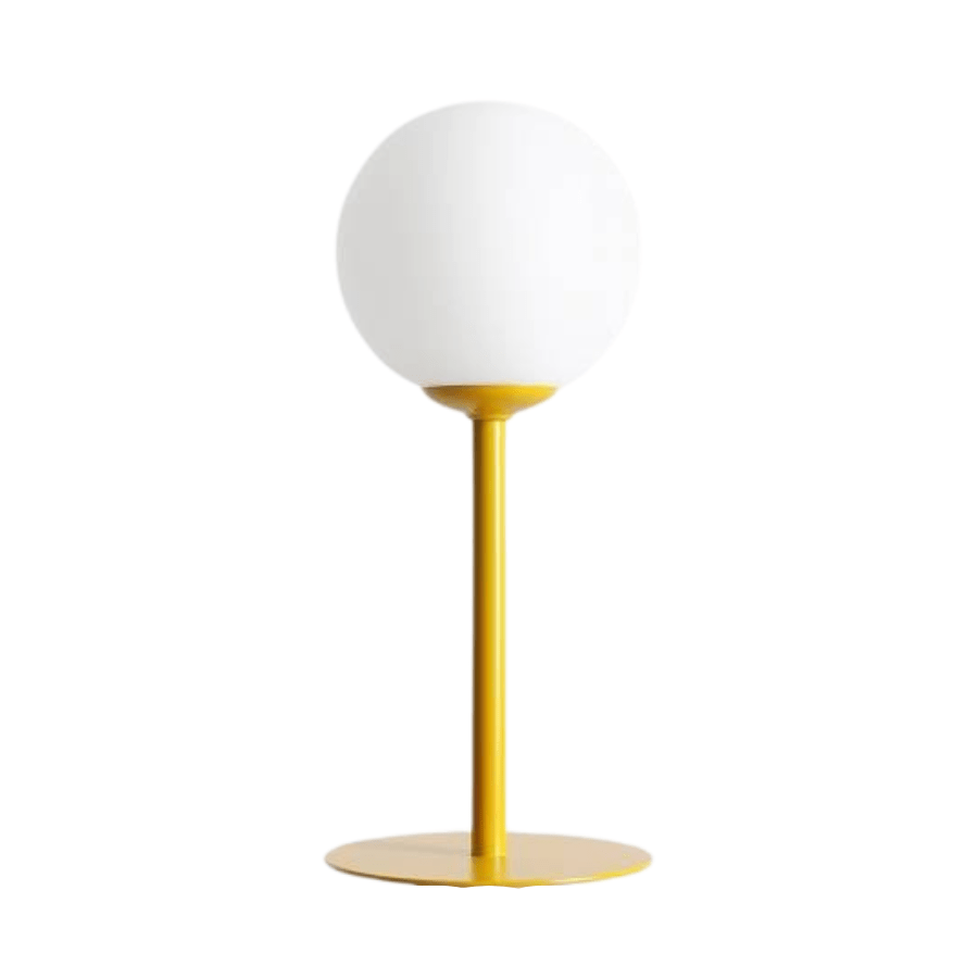 Musztardowa lampa stołowa Pinne z mlecznym kloszem